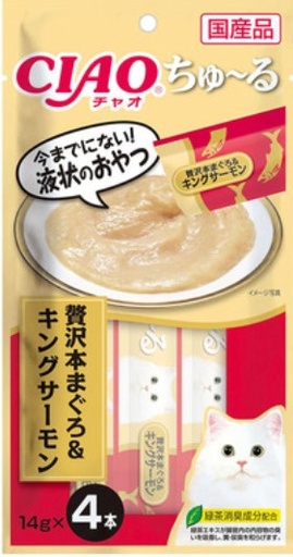 CIAO - 日本貓肉泥小食 (嚴選豪華吞拿魚&帝皇三文魚) 14g x4
