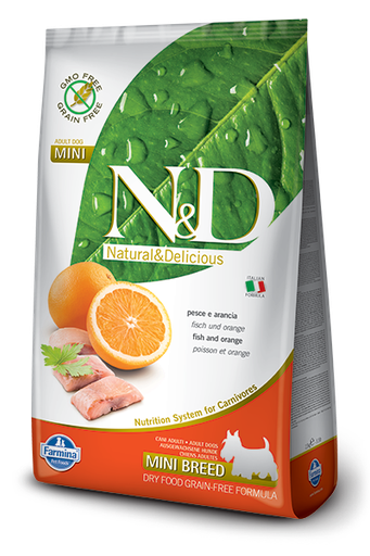 N&D Dog Fish & Orange Adult Mini 成犬(小型犬)專用 天然無殼物系列 魚及橙味 7kg