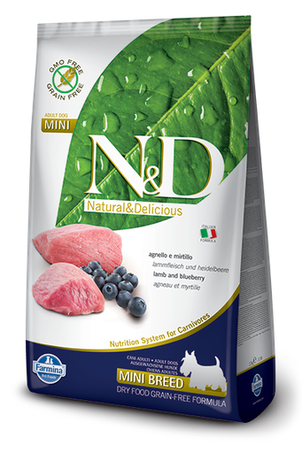 N&D Dog Lamb & Blueberry Adult Mini 成犬(小型犬)專用 天然無殼物系列 - 羊及藍梅味 7kg
