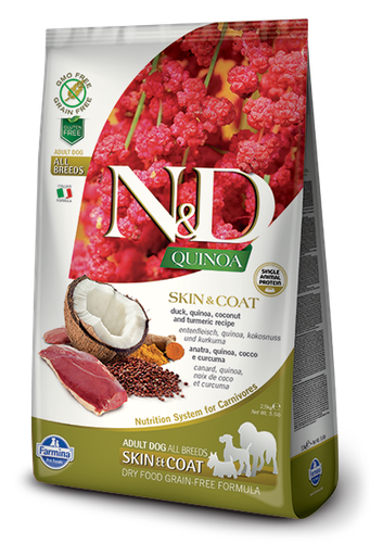 N&D Quinoa Dog Skin and Coat Duck Adult 成犬專用 天然無殼物系列 食物過敏管理+滋潤皮膚毛髮配方 藜麥及鴨肉 2.5kg