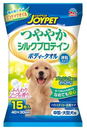 JOYPET Earth Pet 中大型犬用 蠶絲蛋白快乾型濕紙巾 15枚