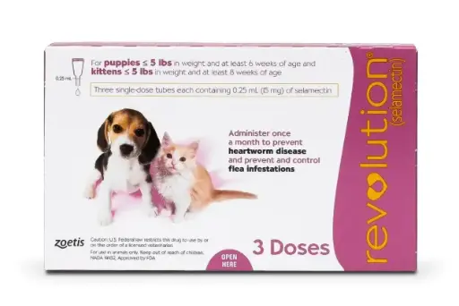 Revolution 幼貓/幼狗用(不多於5磅) 全面杜蟲滴頸劑 (預防跳蚤、心絲蟲、蛔蟲、鉤蟲、耳蟎滴) #粉紅色 #401