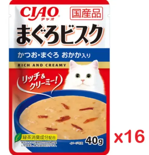 CIAO 鰹魚 + 吞拿魚+木魚碎味 吞拿魚濃湯濕包 貓糧 40g x16 #IC-357