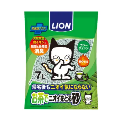 Lion Japan Deodorant Color Changing Green Tea Paper Mineral Litter (Green Tea Fragrance) (Cat Litter) 7L