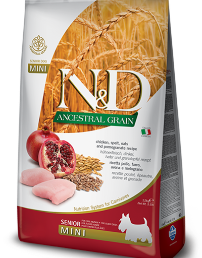 Farmina N&D 天然低殼物系列 雞及石榴味 高齡小型犬 狗糧 2.5kg
